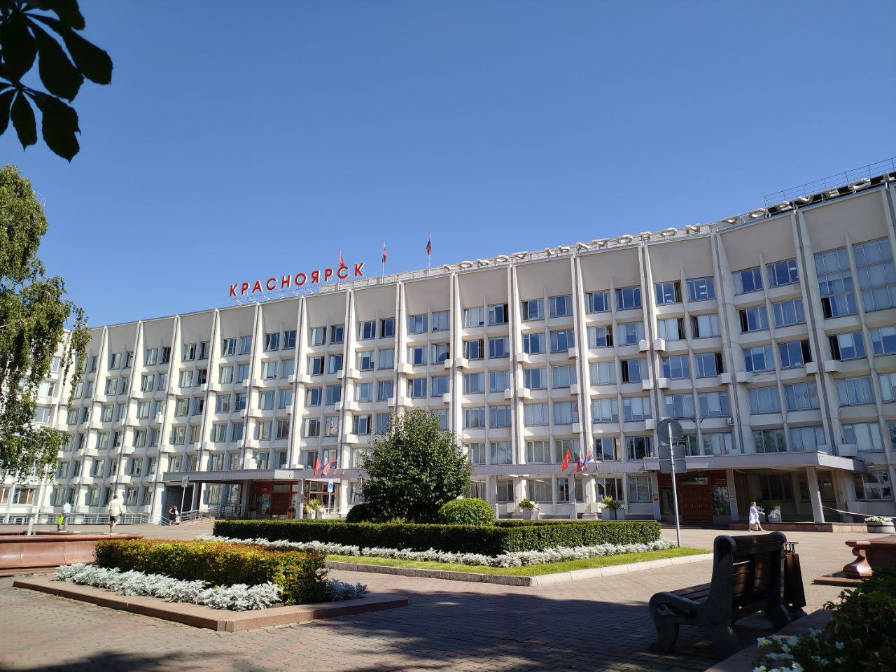 Сегодня, 15 августа, на крыше здания городской администрации Красноярска ведутся монтажные работы – закрепляют в вертикальном положении буквы новой надписи – «Красноярск — город трудовой доблести».