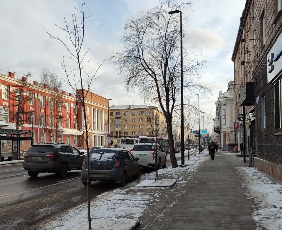 Сегодня центр Красноярска немного коричневый, немного оранжевый, но в основном серый