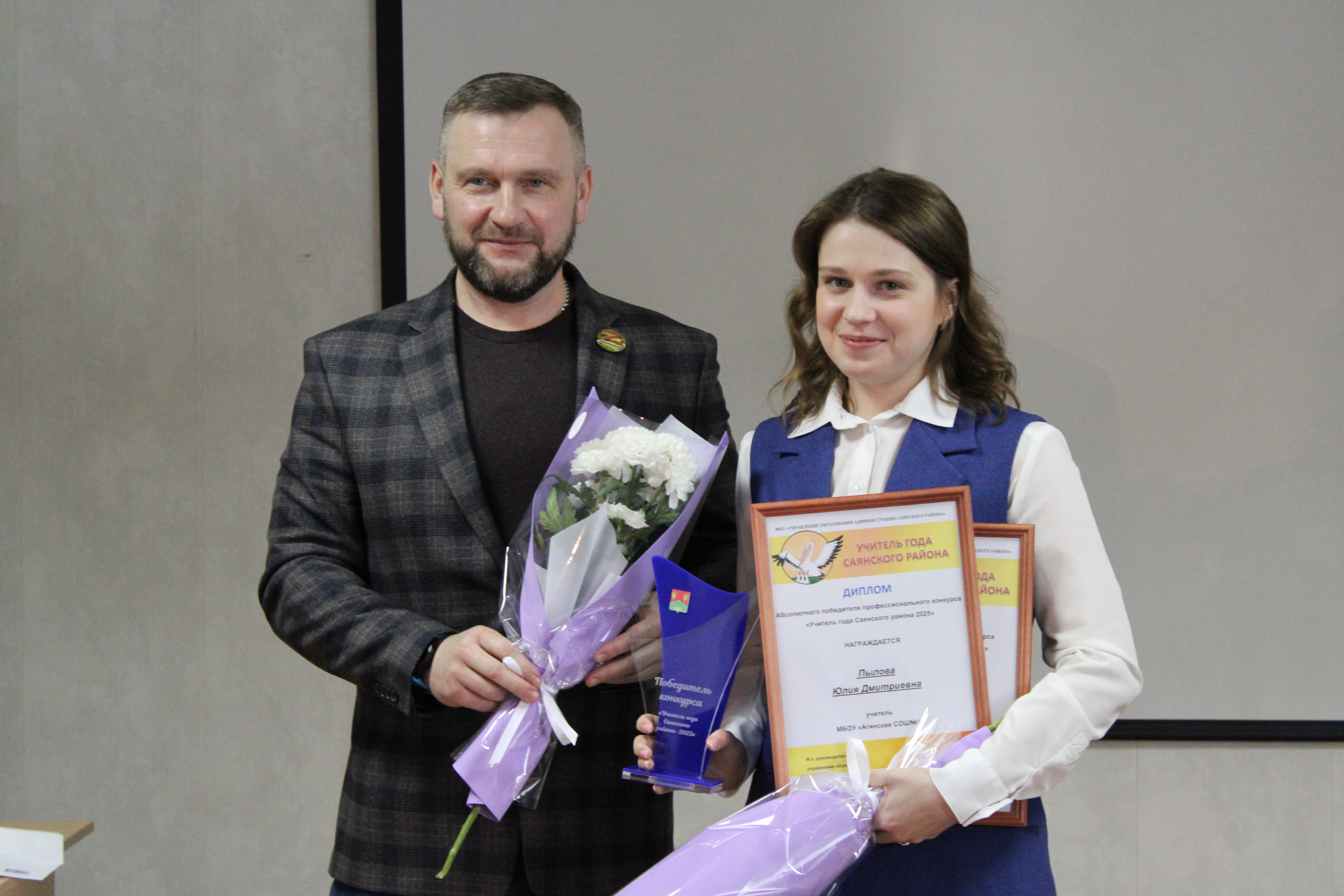 Победитель муниципального конкурса "Учитель года Саянского района - 2025" - Пылова Юлия Дмитриевна.