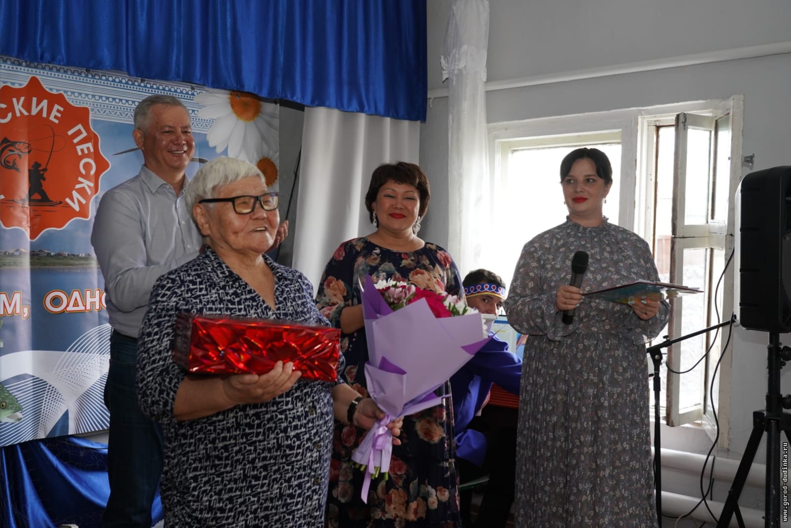 Добрые слова и поздравления звучали в этот день и в адрес юбиляров — Юрия Осипова, Альбины Лаптуковой, Василия Вовк, Валентины Ивановой. В знак уважения и почтения цветы и памятный подарок вручены Почетному гражданину города Дудинки Прасковье Поротовой, которая 15 лет была председателем Сельского совета поселка, а затем четыре года занимала должность заместителя главы администрации Левинских Песков. Приятный сюрприз получила и старейшина поселка Нина Суслова.
