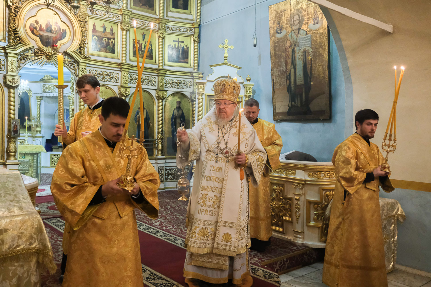 Его Высокопреосвященству сослужили: Административного секретариата Красноярской епархии, настоятель Покровского кафедрального собора города Красноярска митрофорный протоиерей Владимир Дорош; секретарь Красноярской епархии, благочинный церквей Левобережного городского округа Красноярска, наместник красноярского Успенского мужского монастыря игумен Иннокентий (Нилов); штатные клирики Покровского собора.